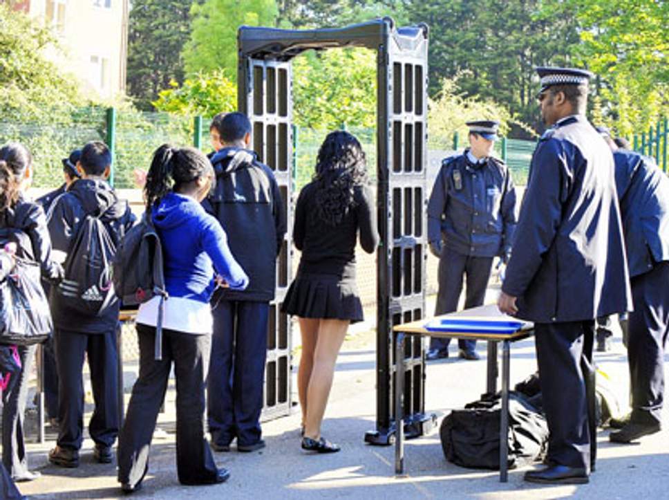 Police have also temporarily been granted increased stop search powers in south London . Met Police officers will also have the power to stop and search on the streets — without proving reasonable grounds to suspect that person is carrying a weapon. Knife arches are going to be used at schools across south London in a bid to tackle the growing problem of knife crime in the capital . The latest crackdown on weapon carrying has been introduced in Lambeth, Wandsworth and Merton in south London. Scotland Yard is desperately trying to beat back the surging knife crime trend — which saw a 17-year-old boy stabbed “six times” in broad daylight over the weekend. Knife arches will be introduced in schools across the three south London boroughs to tackle the growing amount of youth violence.